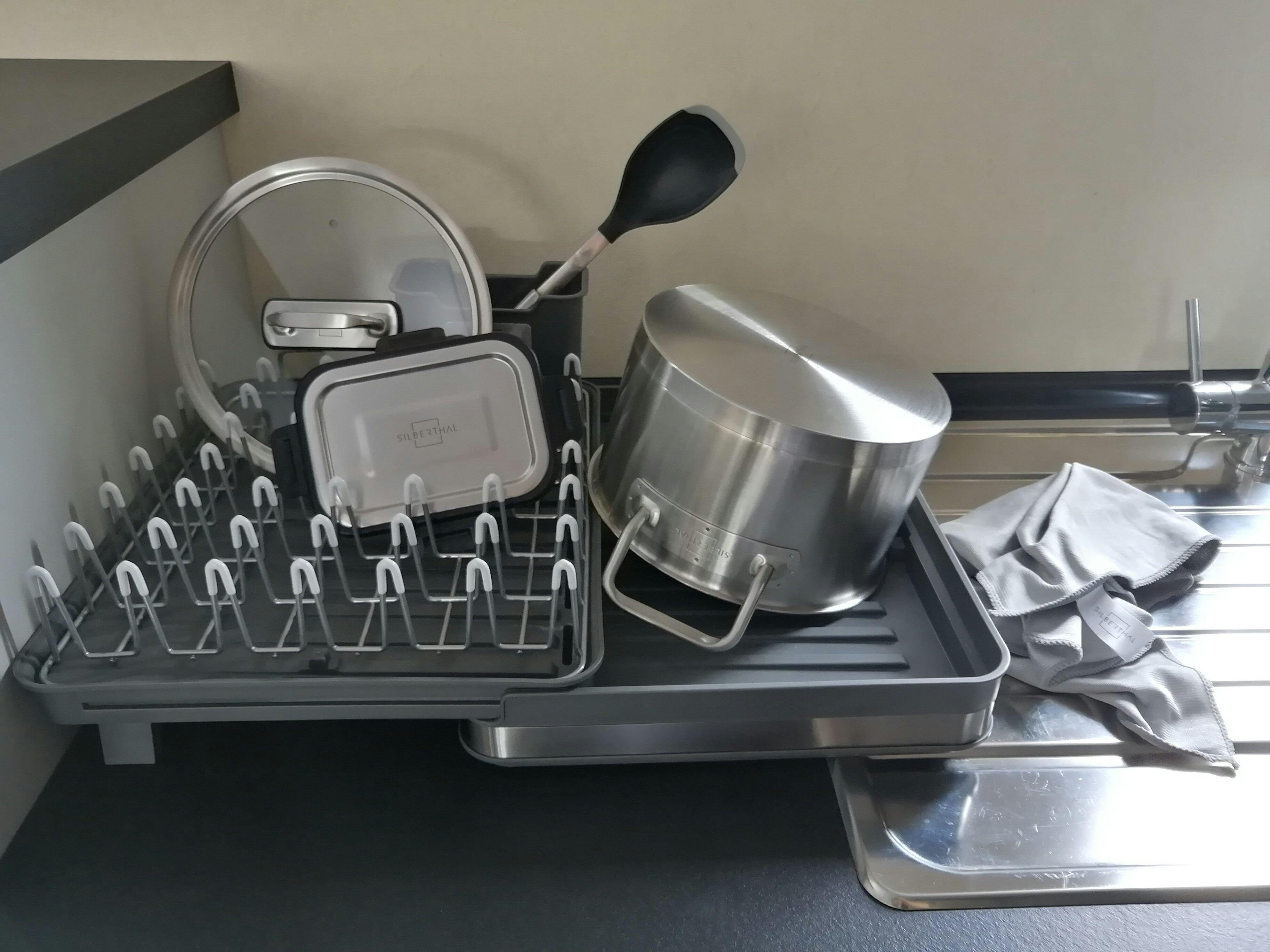 Sehr gut finde ich, dass der Besteckeinsatz und das Gitter abnehmbar ist. Hat man zum Beispiel nur Töpfe und Schüsseln, ist dies sehr vorteilhaft.
