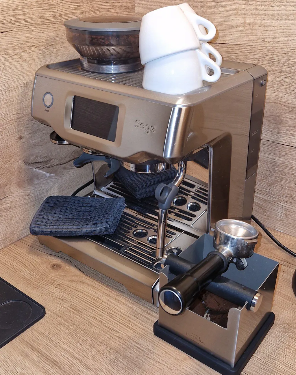 Sauber und schnell - Die Box fasst ca. 10 Siebträgerladungen (Kaffeepuks)