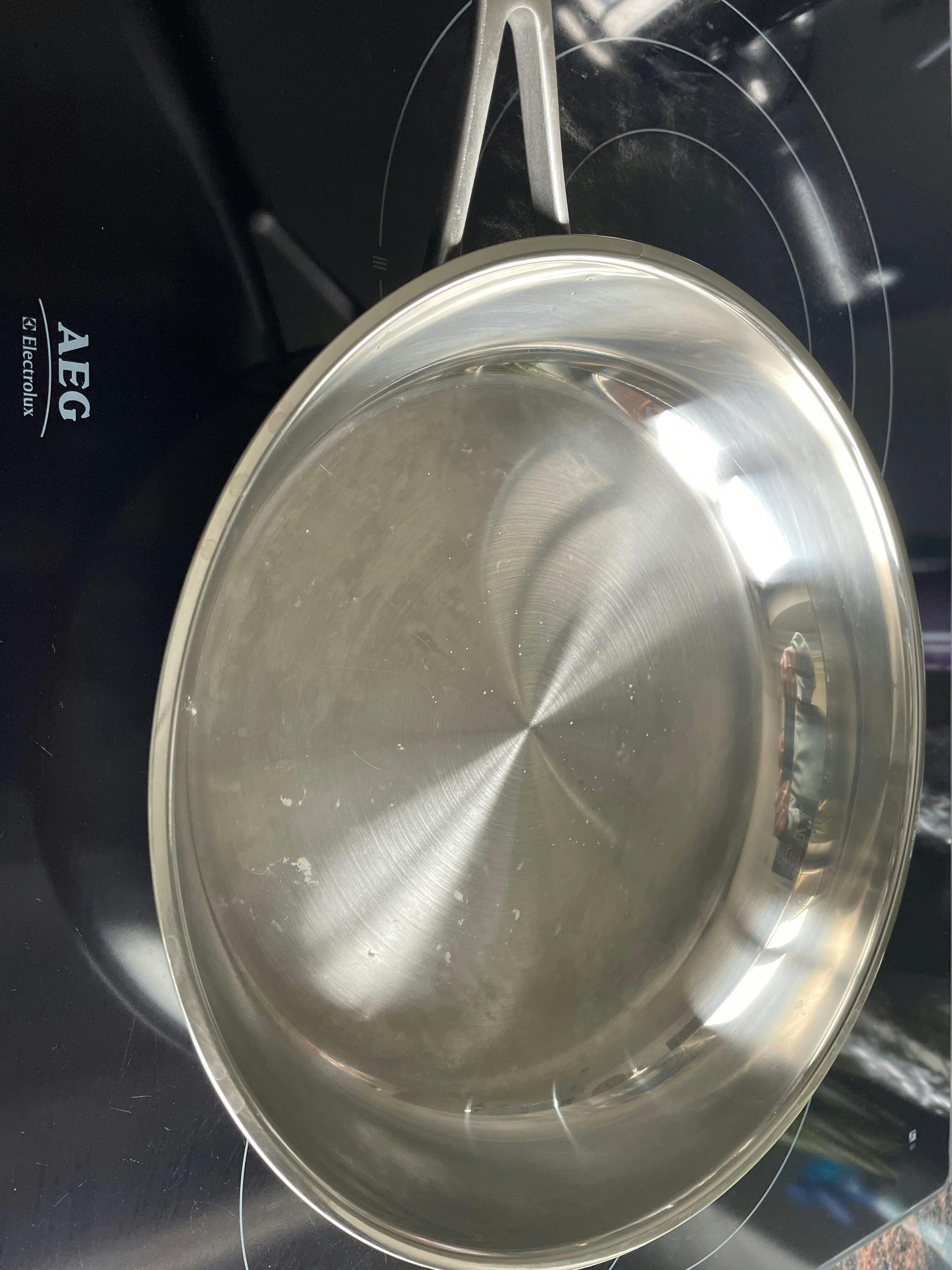 Unsere Pfanne besteht aus hochwertigem 18/10 Edelstahl, der einen geringen Nickelanteil enthält. Sie ist daher nicht vollständig nickelfrei.
