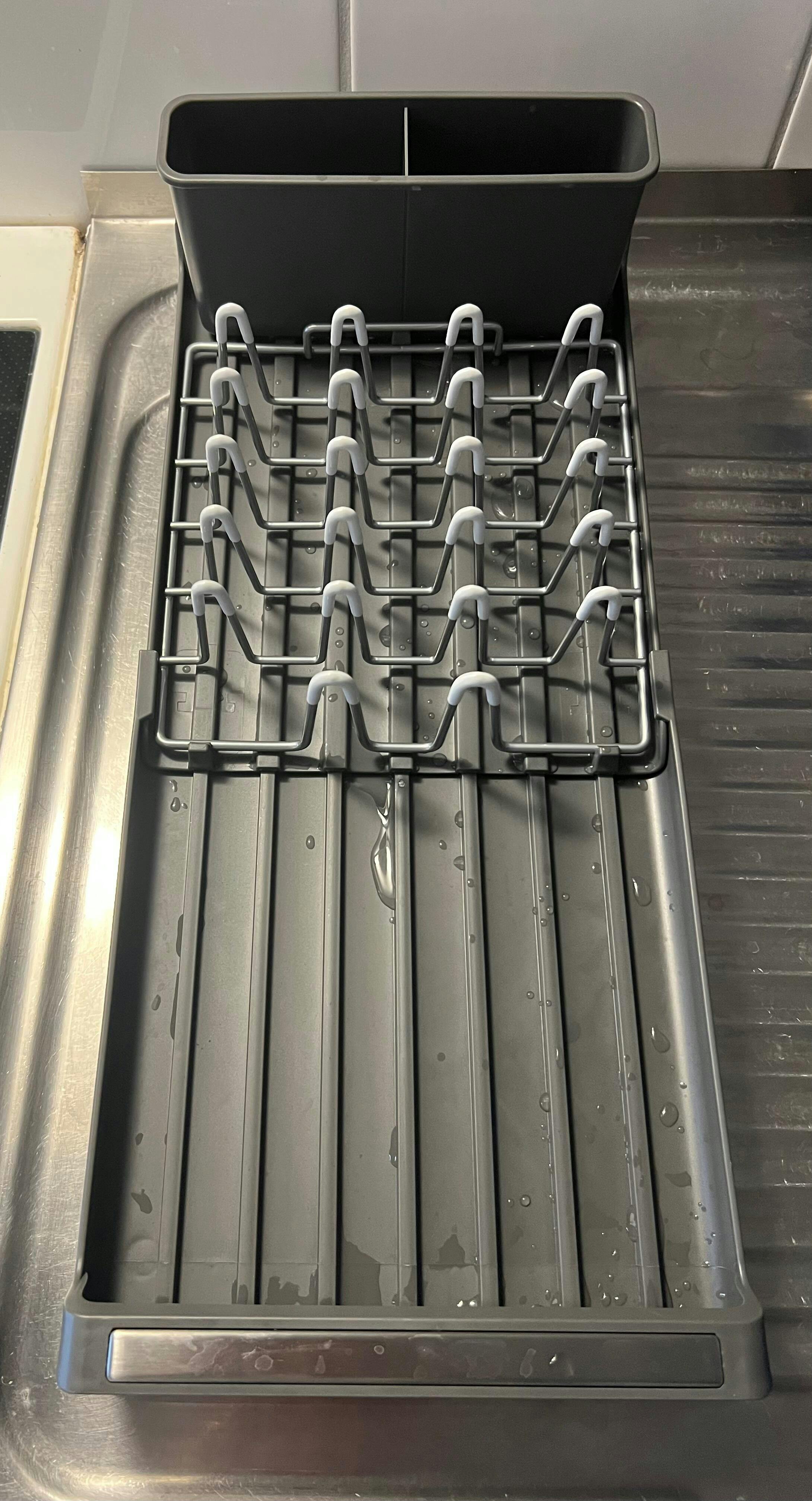 Sag Wasserflecken und dem Geschirr-Chaos Lebewohl. Unser Abtropfgestell macht das Trocknen von Geschirr ordentlich und den Alltag in der Küche einfach. Dank des innovativen Spitzendesigns und der ausziehbaren, rechteckigen Form holst du alles aus deinem Platz raus.