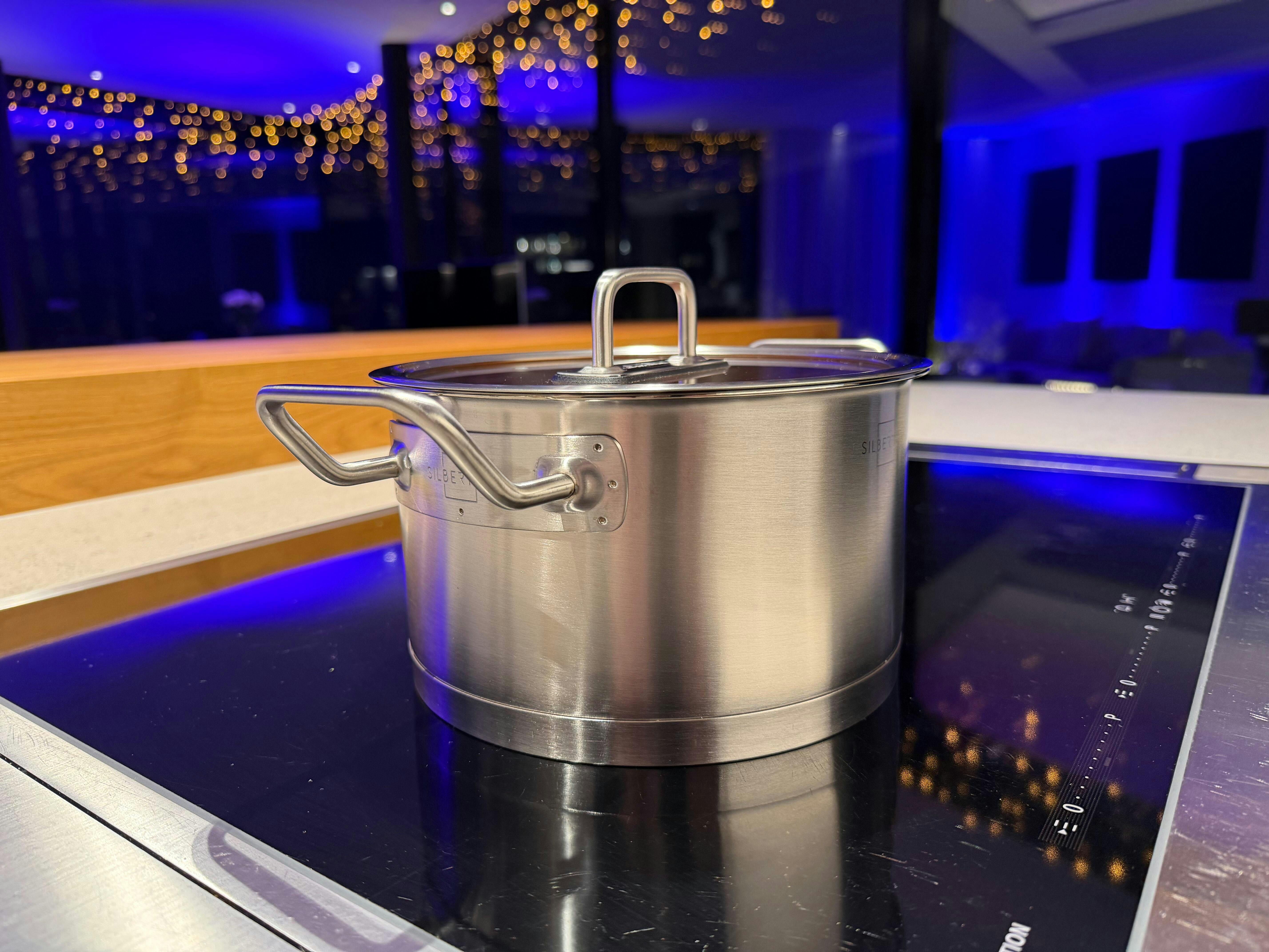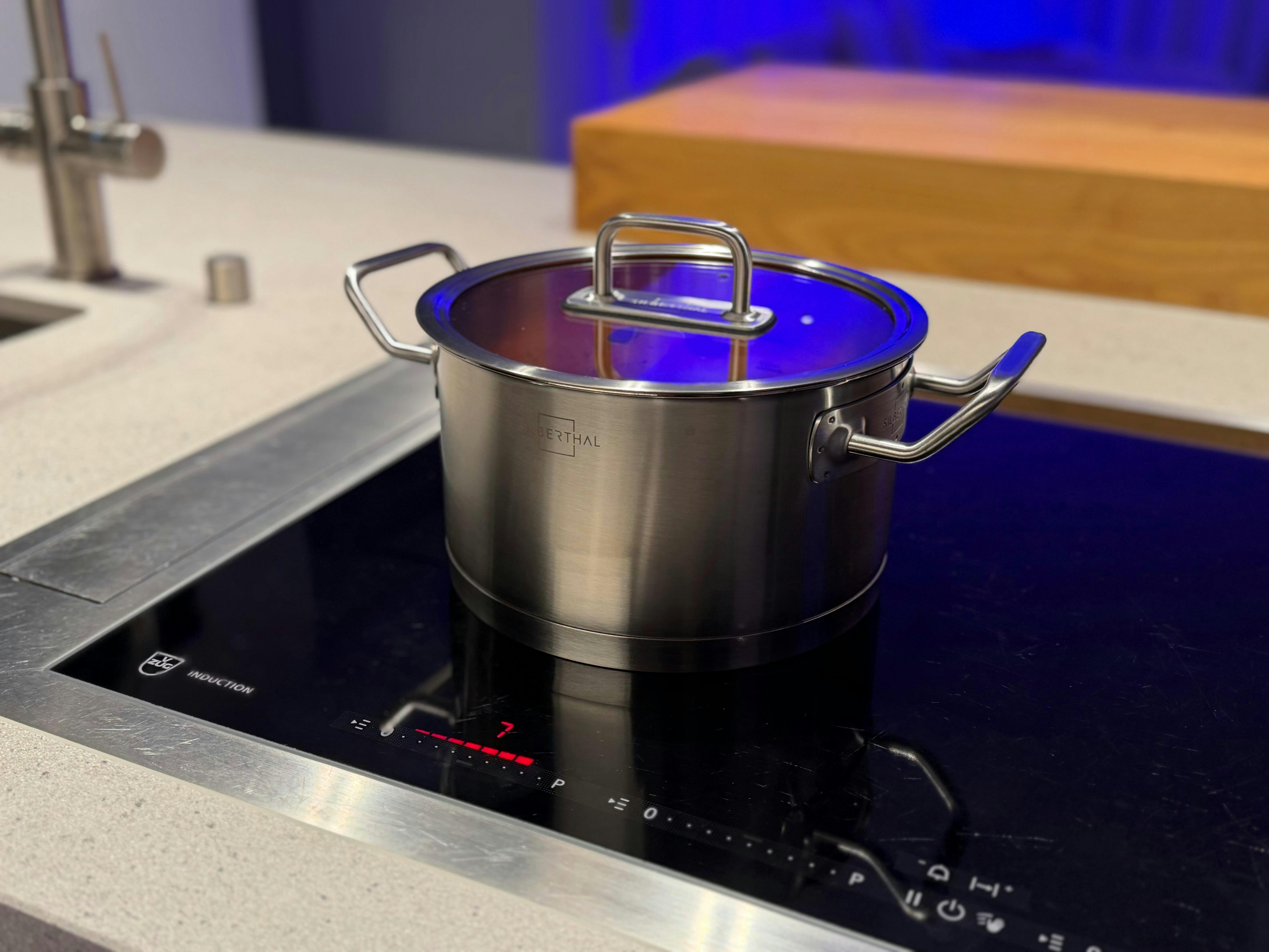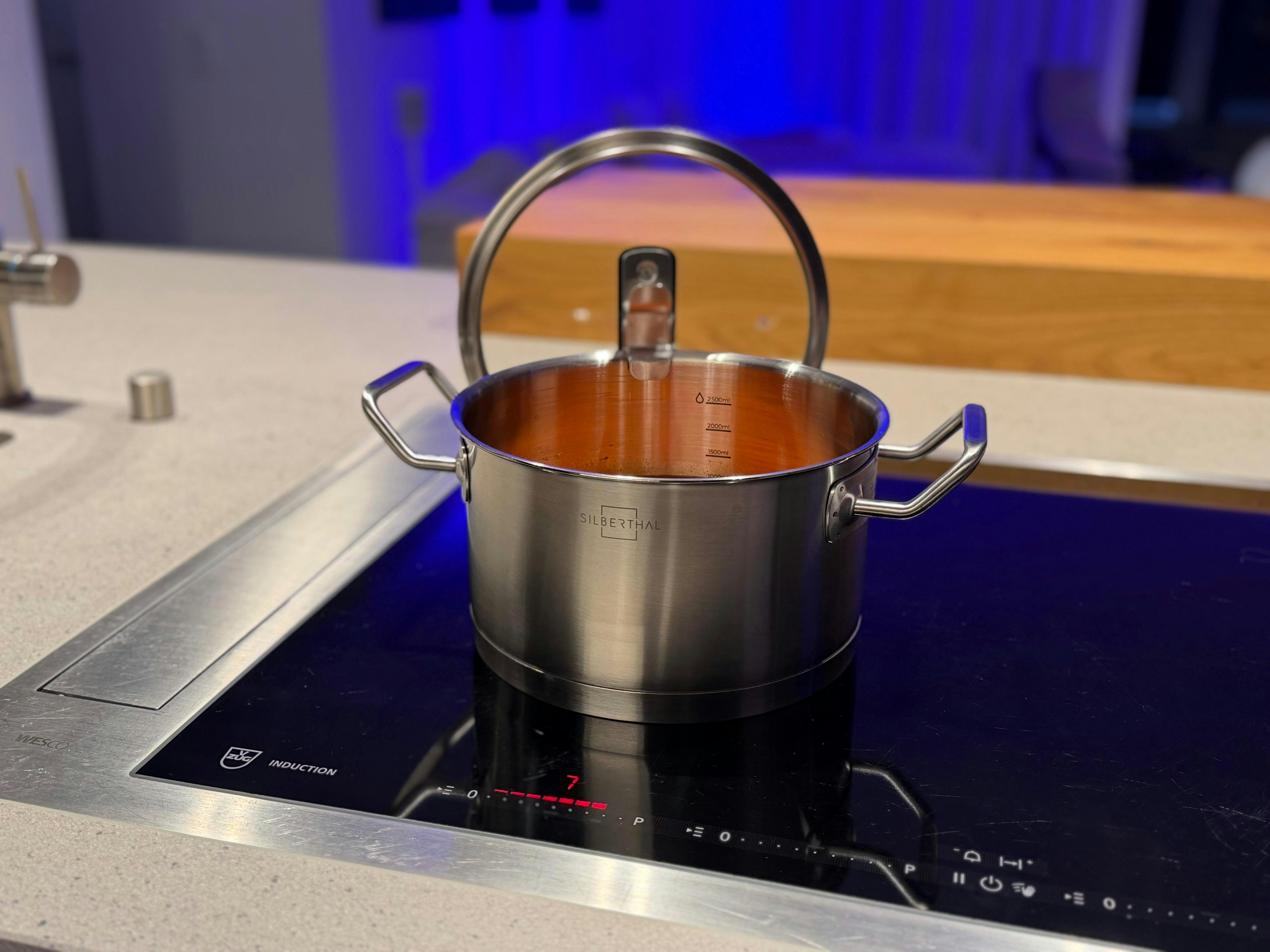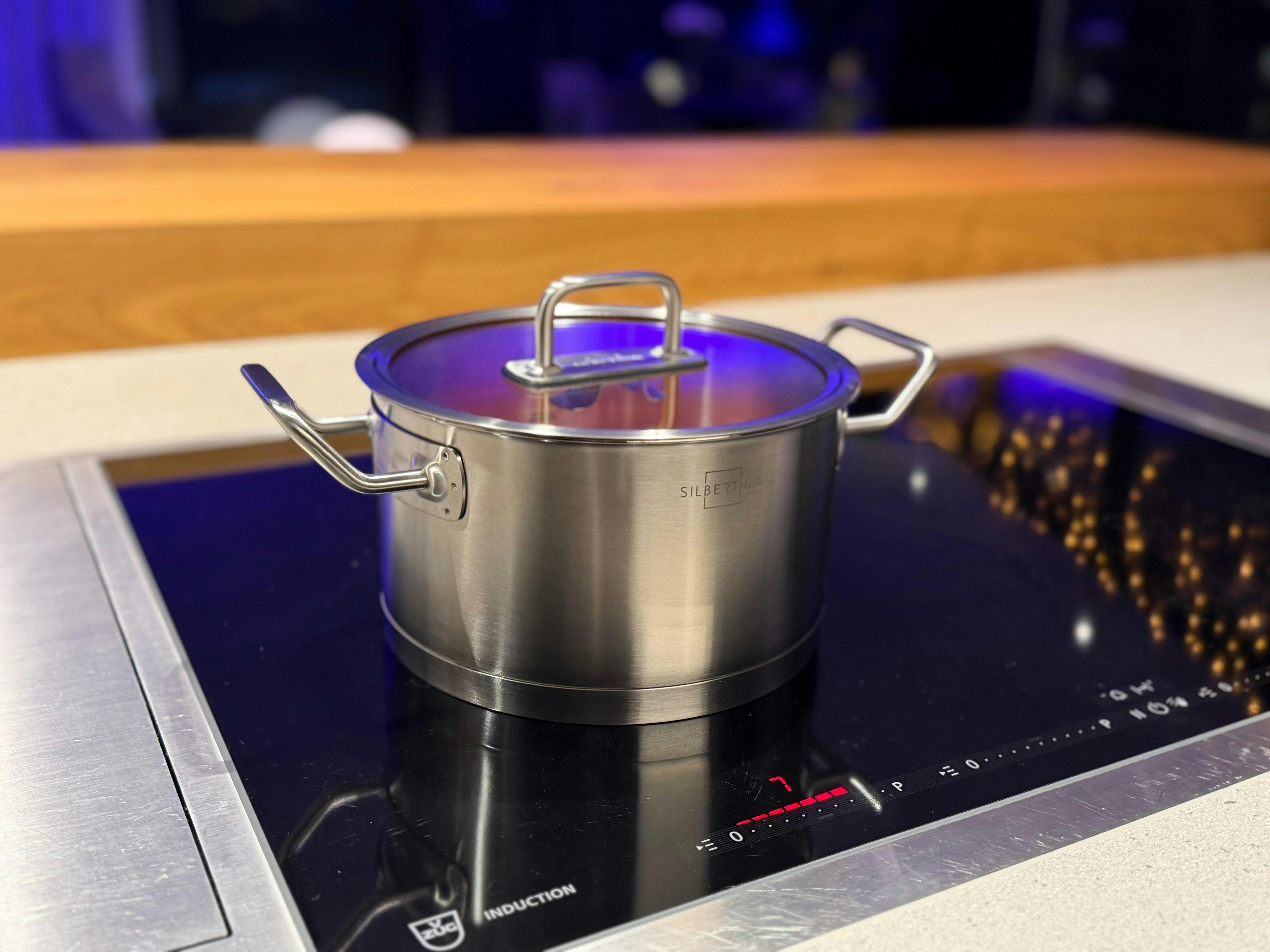 In den Kochtopf für Induktion passt alles rein, was zum Kochen viel Flüssigkeit braucht, wie herzhafte Eintöpfe oder geschmackvolle Suppen. Auch Kartoffeln oder leckere Pasta finden ausreichend Platz. Ebenso lassen sich größeres Gemüse wie Blumenkohl oder Brokkoli bequem blanchieren.