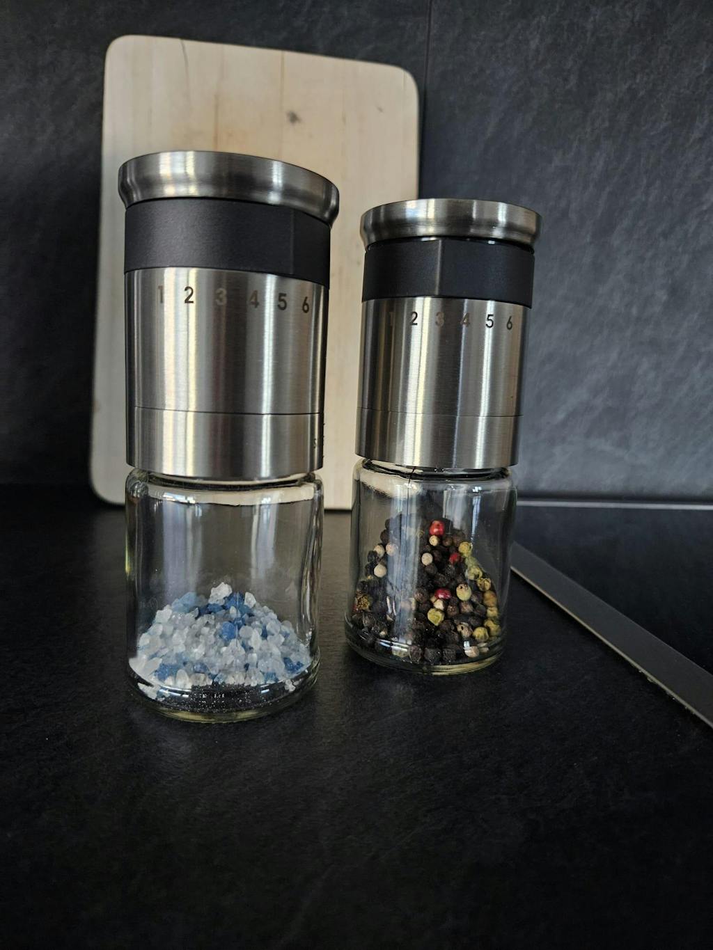 Etwa 100 ml, ideal für 110 g grobes Salz oder rund 50 g Pfefferkörner.