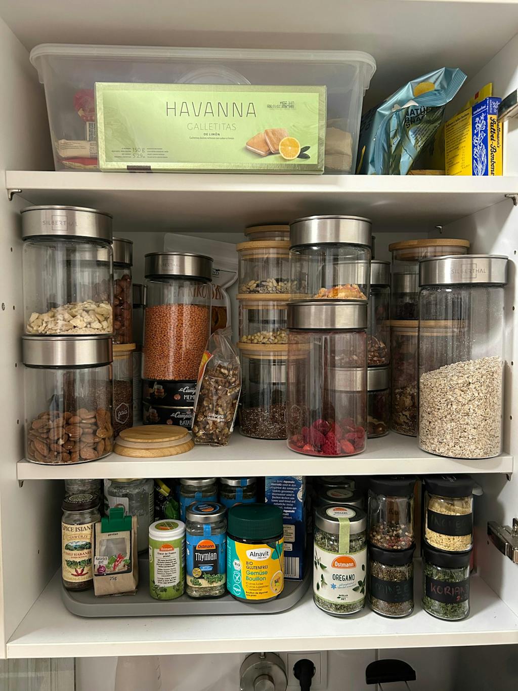 Der transparente Glasbehälter für Lebensmittel sorgt für einen organisierten und dekorativen Überblick von deinem Vorrat in der Küche.