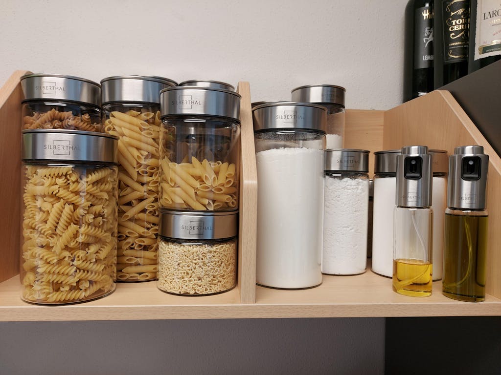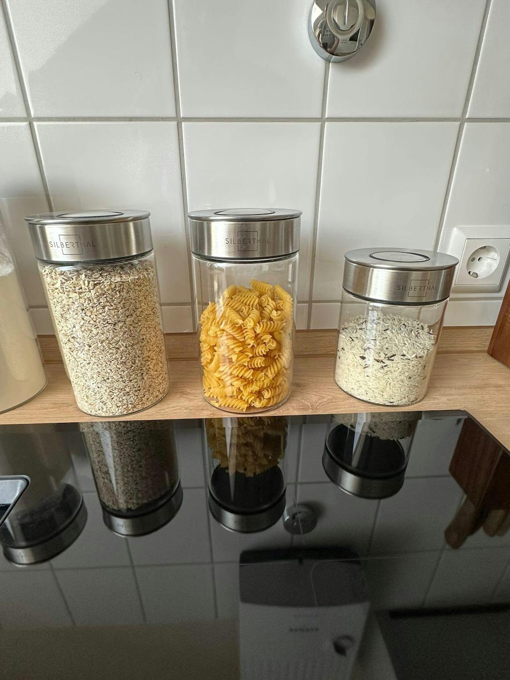 Nie wieder gebrochene Nudeln im Vorratsschrank! Unsere extra hohen Vorratsgläser wurden speziell für Spaghetti entwickelt – mit 1.700 ml Volumen bieten sie genug Platz für lange Pasta, aber auch für große Mengen Müsli, Reis oder Haferflocken. Alles bleibt ganz, ordentlich und griffbereit.