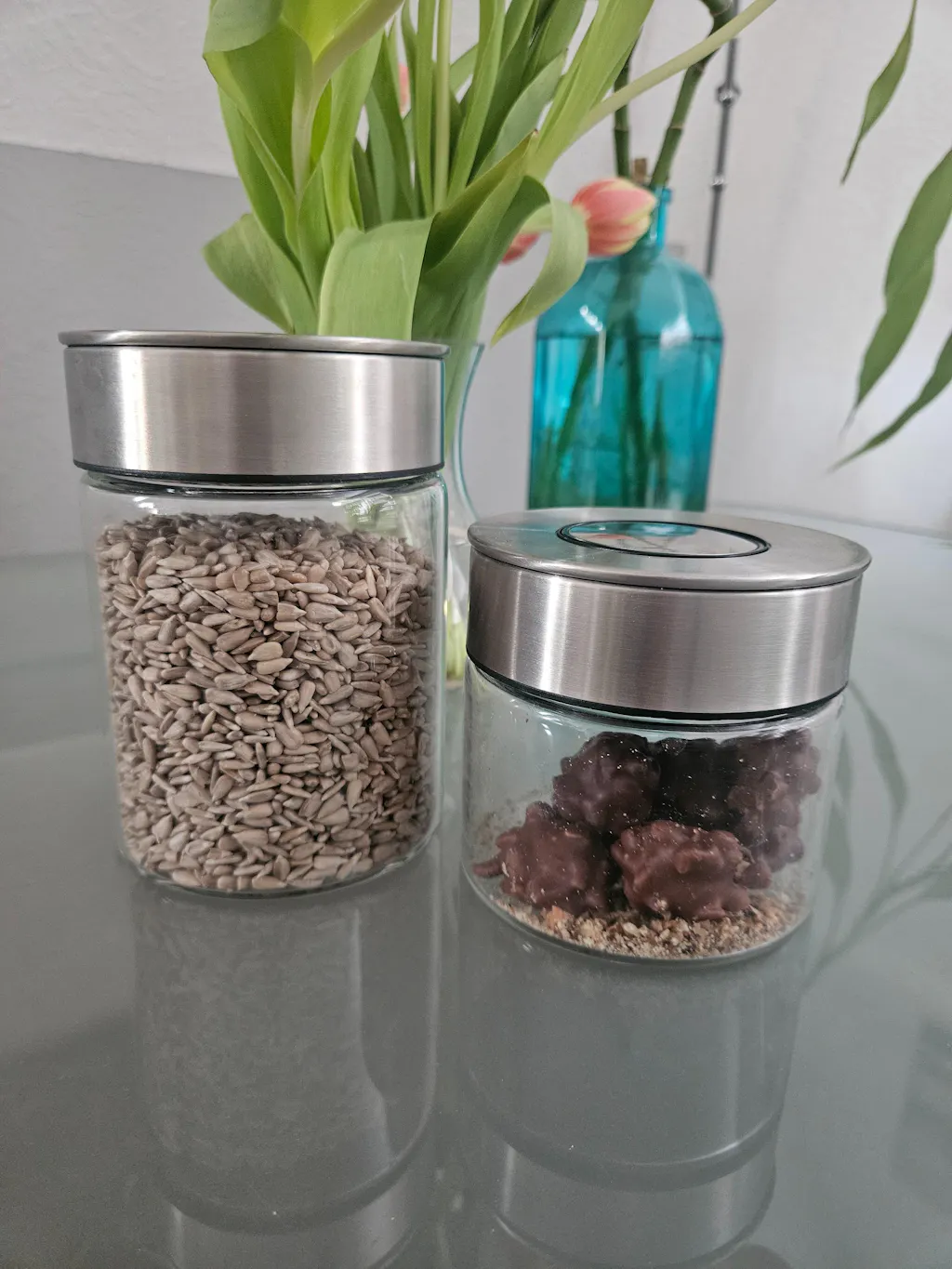 Für die Vorratsgläser haben wir hochwertiges Borosilikatglas verwendet. Dieses ist besonders hitze- sowie strapazierfähig und spülmaschinenfest.
