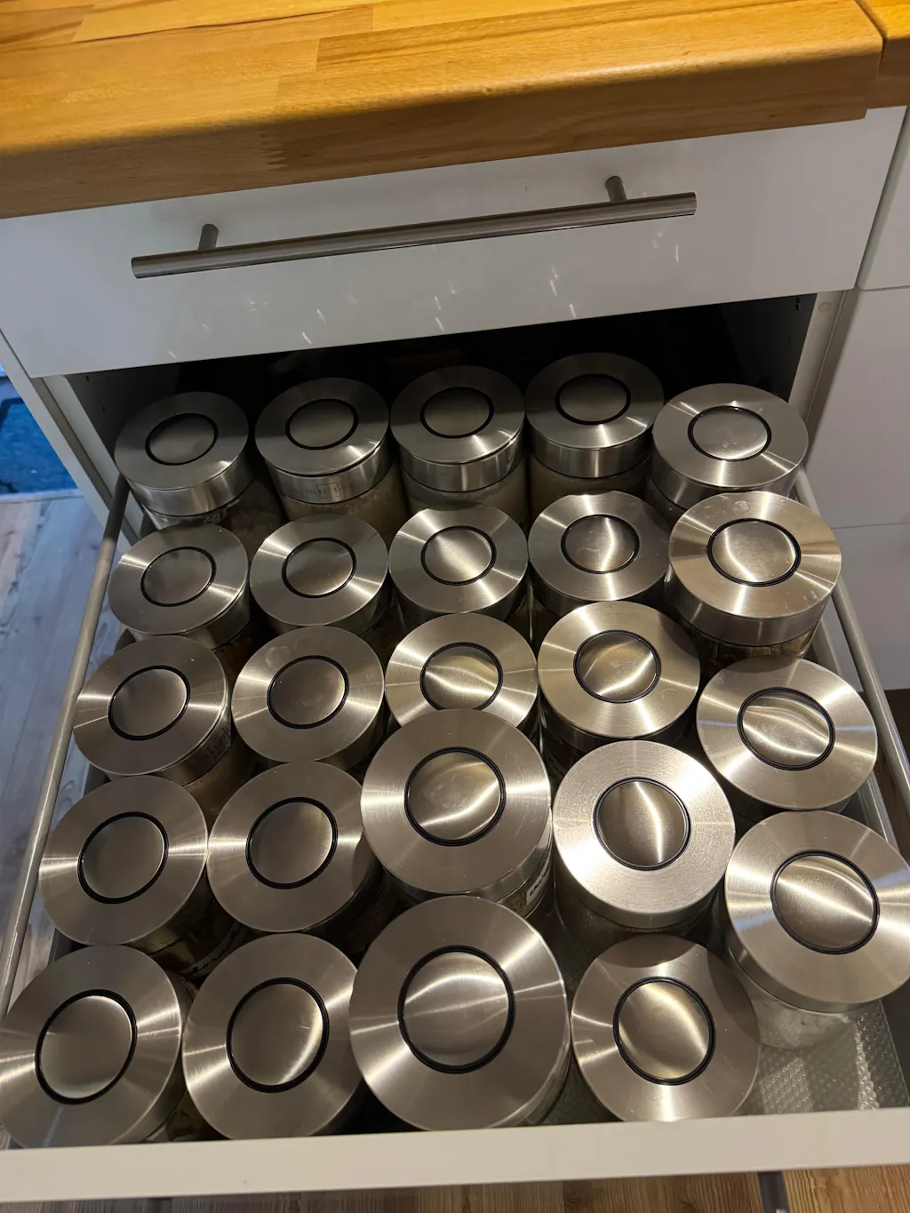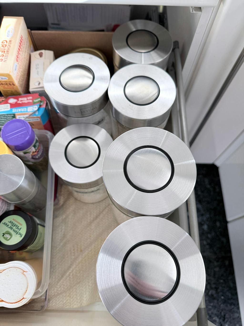 Für die Vorratsgläser haben wir hochwertiges Borosilikatglas verwendet. Dieses ist besonders hitze- sowie strapazierfähig und spülmaschinenfest.